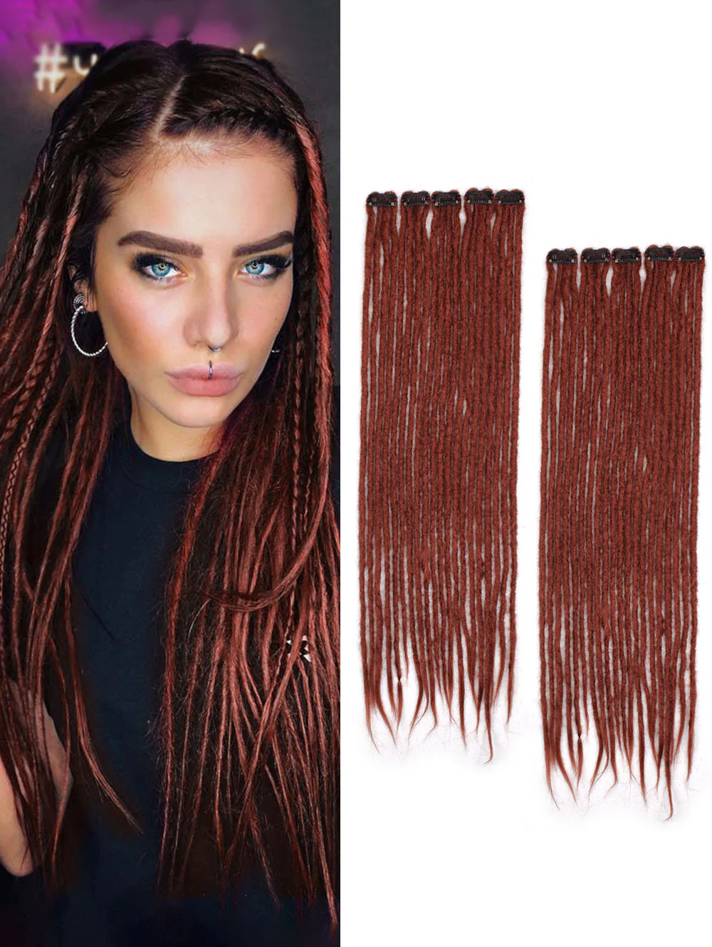 Clip in Dreadlock Hair Extensions, Handmade Clip In Dreads