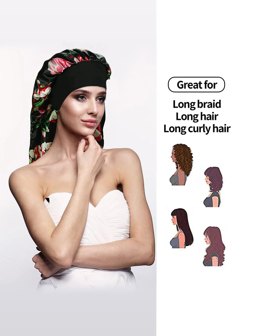 4 pcs Satin Sleep Cap for Long Hair and Dreadlock, Sleeping Bonnet for Women