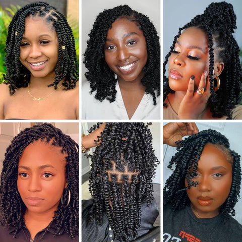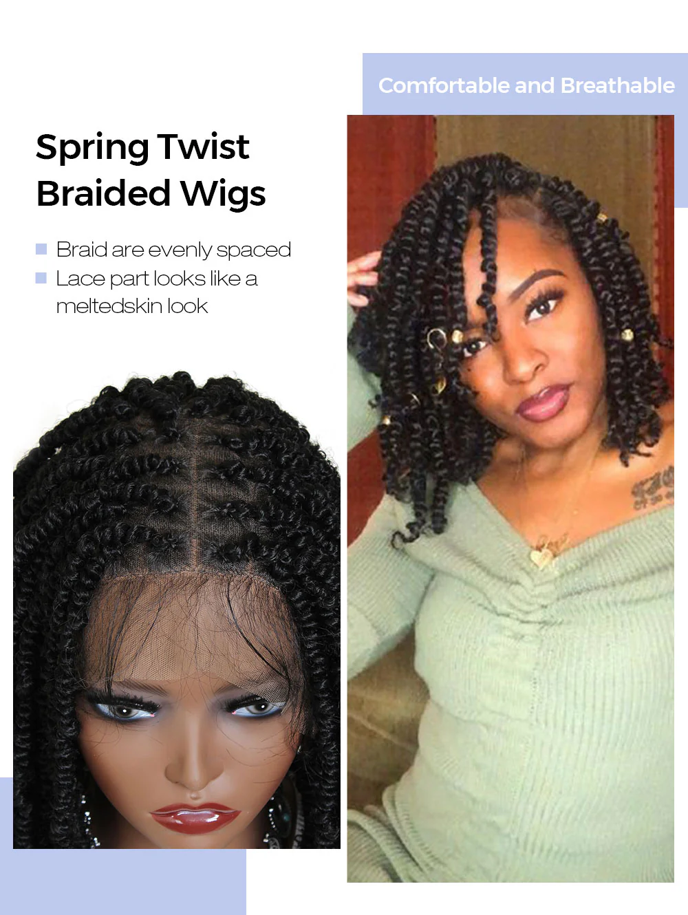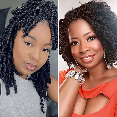 12" Pre-Twisted Spring Twists Braided Wigs, #1B Square Based Full Lace Knotless Cornrow Braids Wig