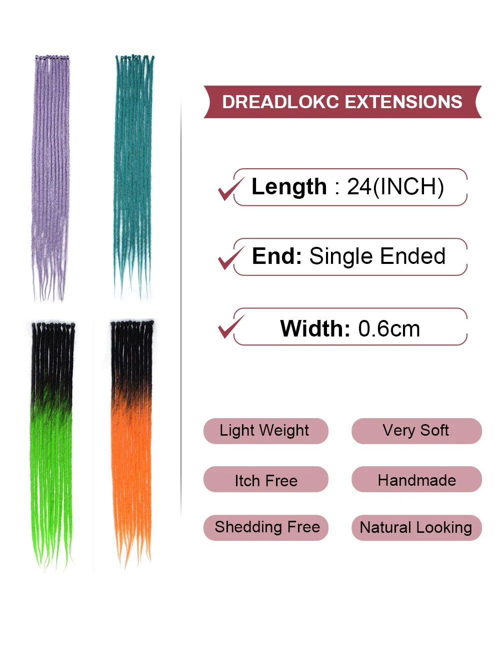 24" SE Thin 0.6cm Synthetic Dreadlock Extensions Handmade Fake Dreads